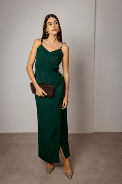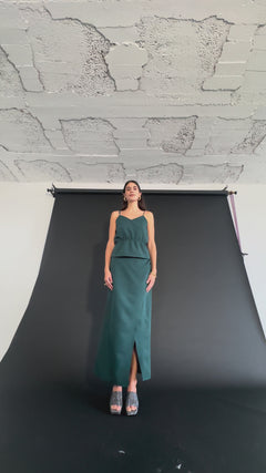 Falda con pliegues laterales color verde esmeralda. Combina con nuestro top Livia o para elevar cualquier look de día a noche.